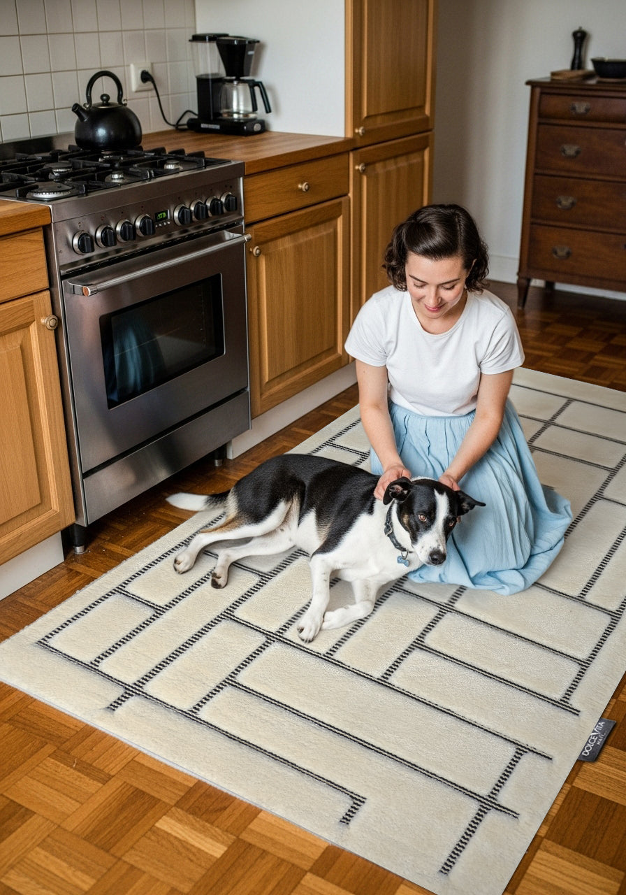 Maison Modern Halı, zengin ve zarif tasarımı ile mekanlarınıza anında şıklık katmanızı sağlayacak. Bu halının dokusu, farklı renk tonlarındaki ince çizgilerle süslü geometrik desenler içerir, böylece halı, mekana dinamik bir enerji katar. Yumuşak ve dayanıklı akrilik polyester karışımı malzemesi sayesinde uzun süreli kullanım vaat ederken, 6 mm hav yüksekliği ayaklarınızın altında rahat bir his yaratır.