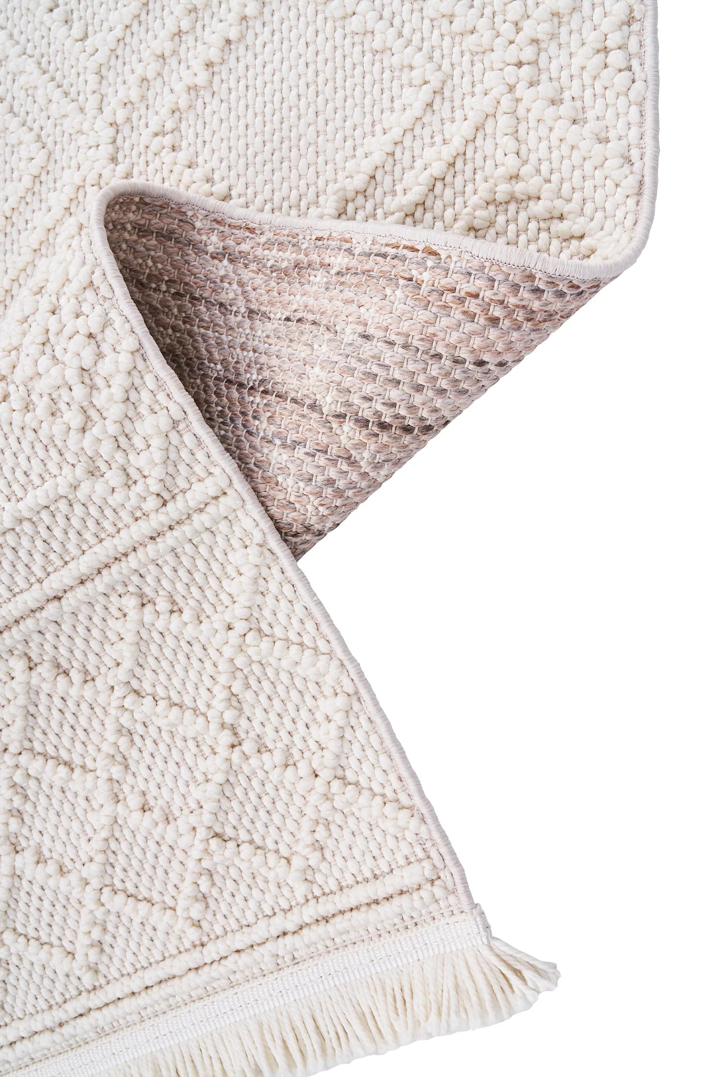 Not: Bu halı doğal elyaf ve pamuk atkı ile üretildiği için eninde ±%3–4, boyunda ise ±%1–2 oranında çekme payı olabilir.