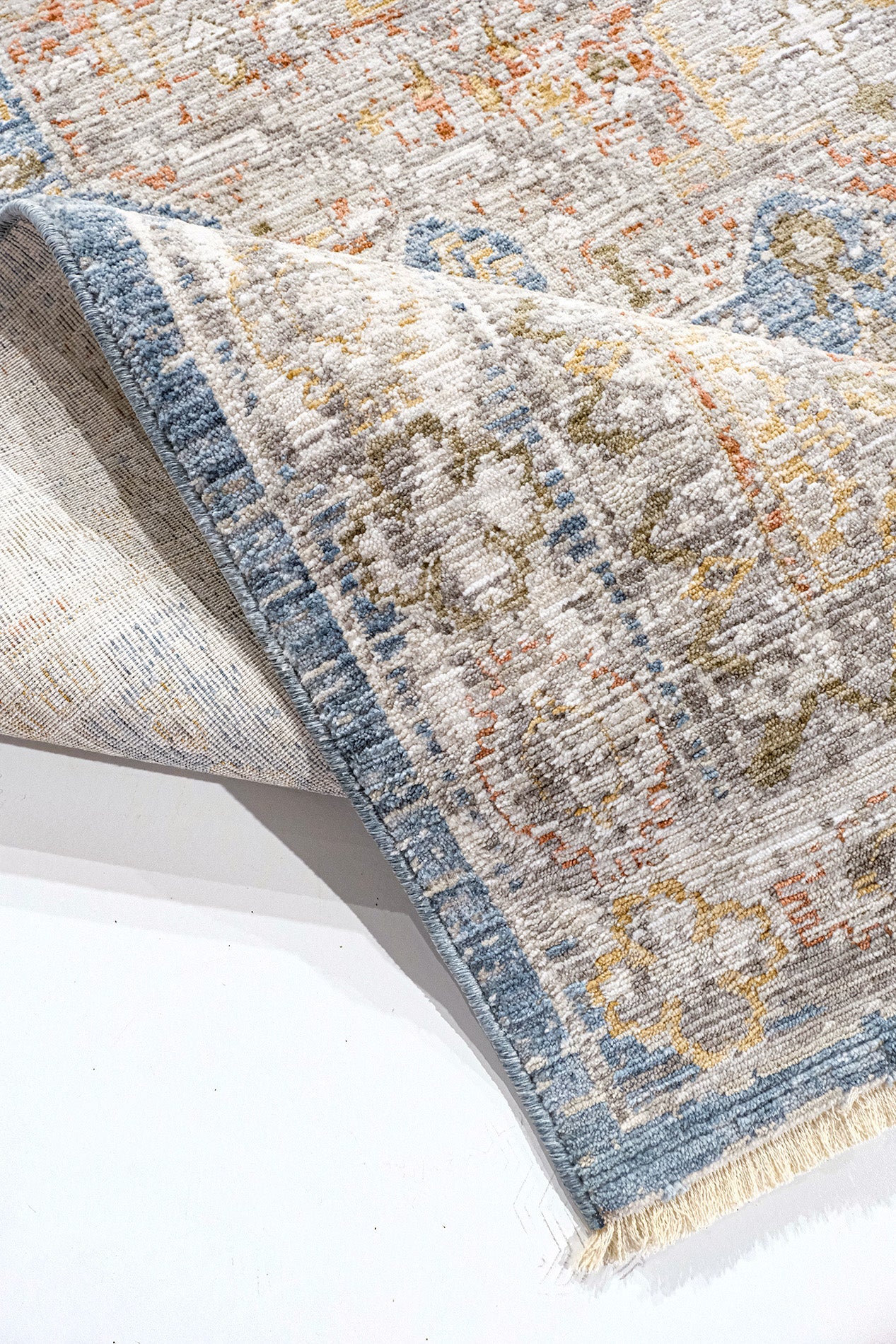 Not: Bu halı doğal elyaf ve pamuk atkı ile üretildiği için eninde ±%3–4, boyunda ise ±%1–2 oranında çekme payı olabilir.