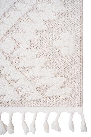 Not: Bu halı doğal elyaf ve pamuk atkı ile üretildiği için eninde ±%3–4, boyunda ise ±%1–2 oranında çekme payı olabilir.