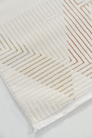 Dolce Vita Maison Modern Halı, zengin ve zarif tasarımı ile mekanlarınıza anında şıklık katmanızı sağlayacak. Bu halının dokusu, farklı renk tonlarındaki ince çizgilerle süslü geometrik desenler içerir, böylece halı, mekana dinamik bir enerji katar. Yumuşak ve dayanıklı akrilik polyester karışımı malzemesi sayesinde uzun süreli kullanım vaat ederken, 6 mm hav yüksekliği ayaklarınızın altında rahat bir his yaratır.