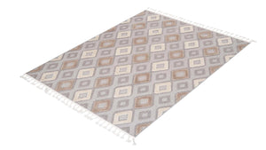 Not: Bu halı doğal elyaf ve pamuk atkı ile üretildiği için eninde ±%3–4, boyunda ise ±%1–2 oranında çekme payı olabilir.