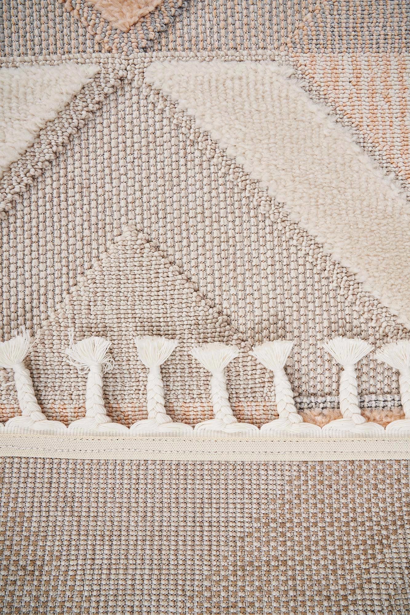 Not: Bu halı doğal elyaf ve pamuk atkı ile üretildiği için eninde ±%3–4, boyunda ise ±%1–2 oranında çekme payı olabilir.