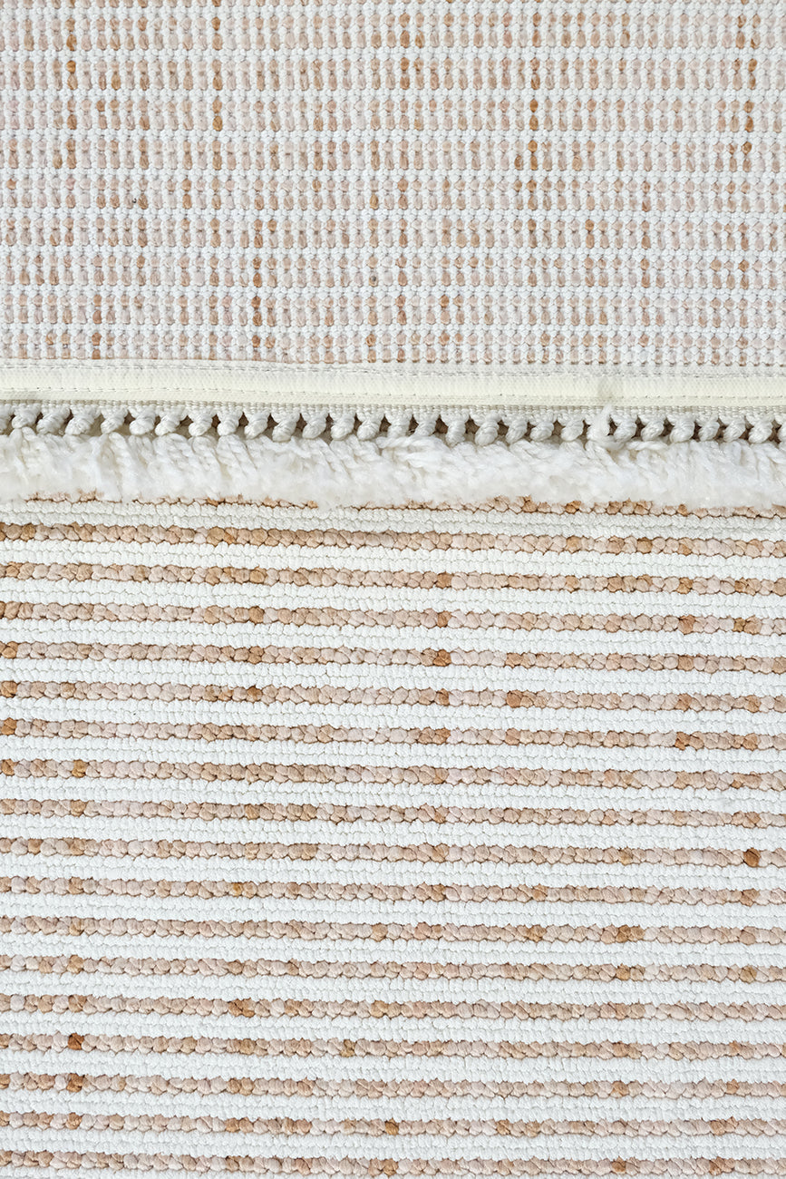 Not: Bu halı doğal elyaf ve pamuk atkı ile üretildiği için eninde ±%3–4, boyunda ise ±%1–2 oranında çekme payı olabilir.