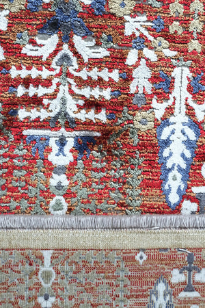 Not: Bu halı doğal elyaf ve pamuk atkı ile üretildiği için eninde ±%3–4, boyunda ise ±%1–2 oranında çekme payı olabilir.