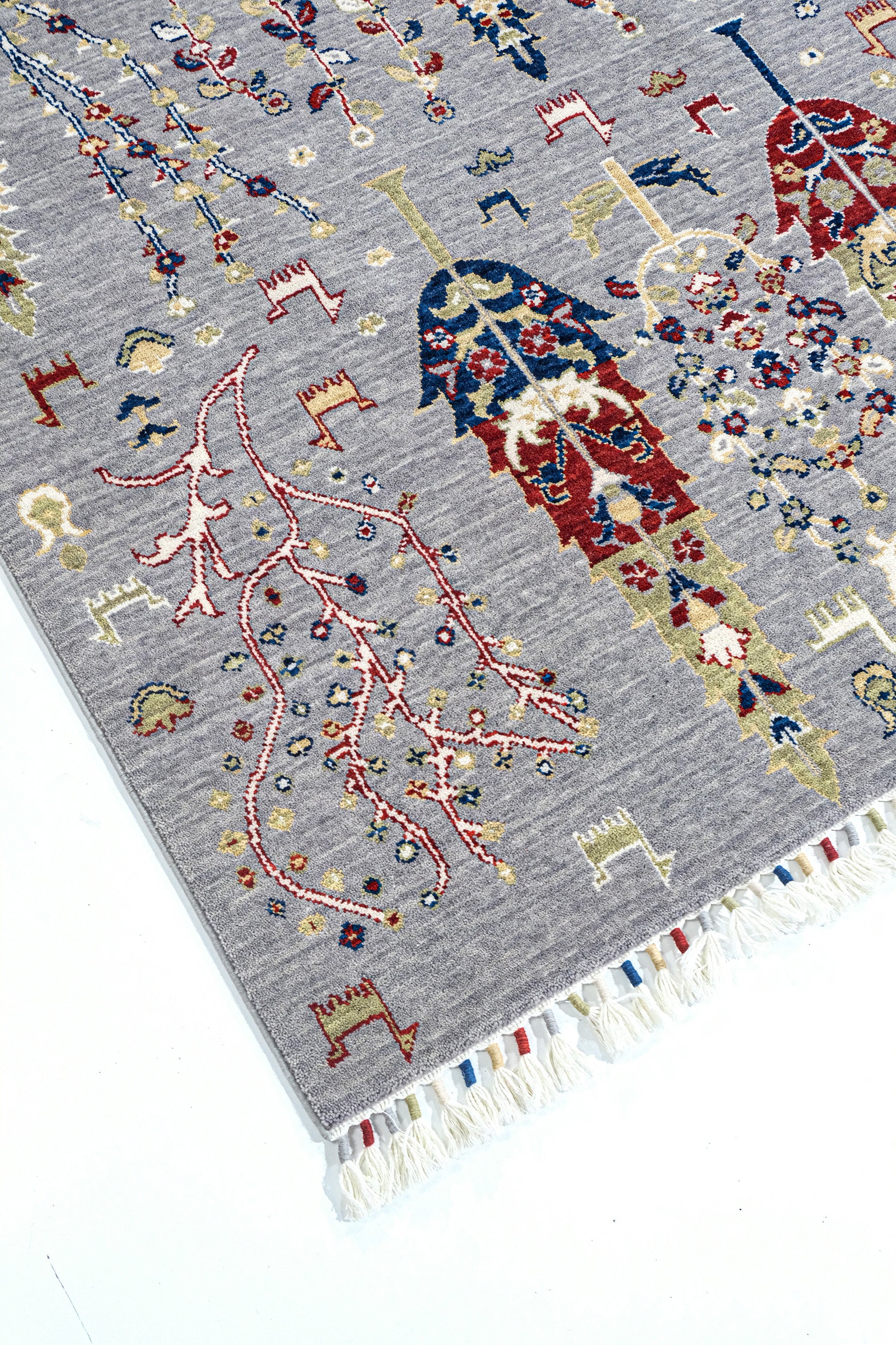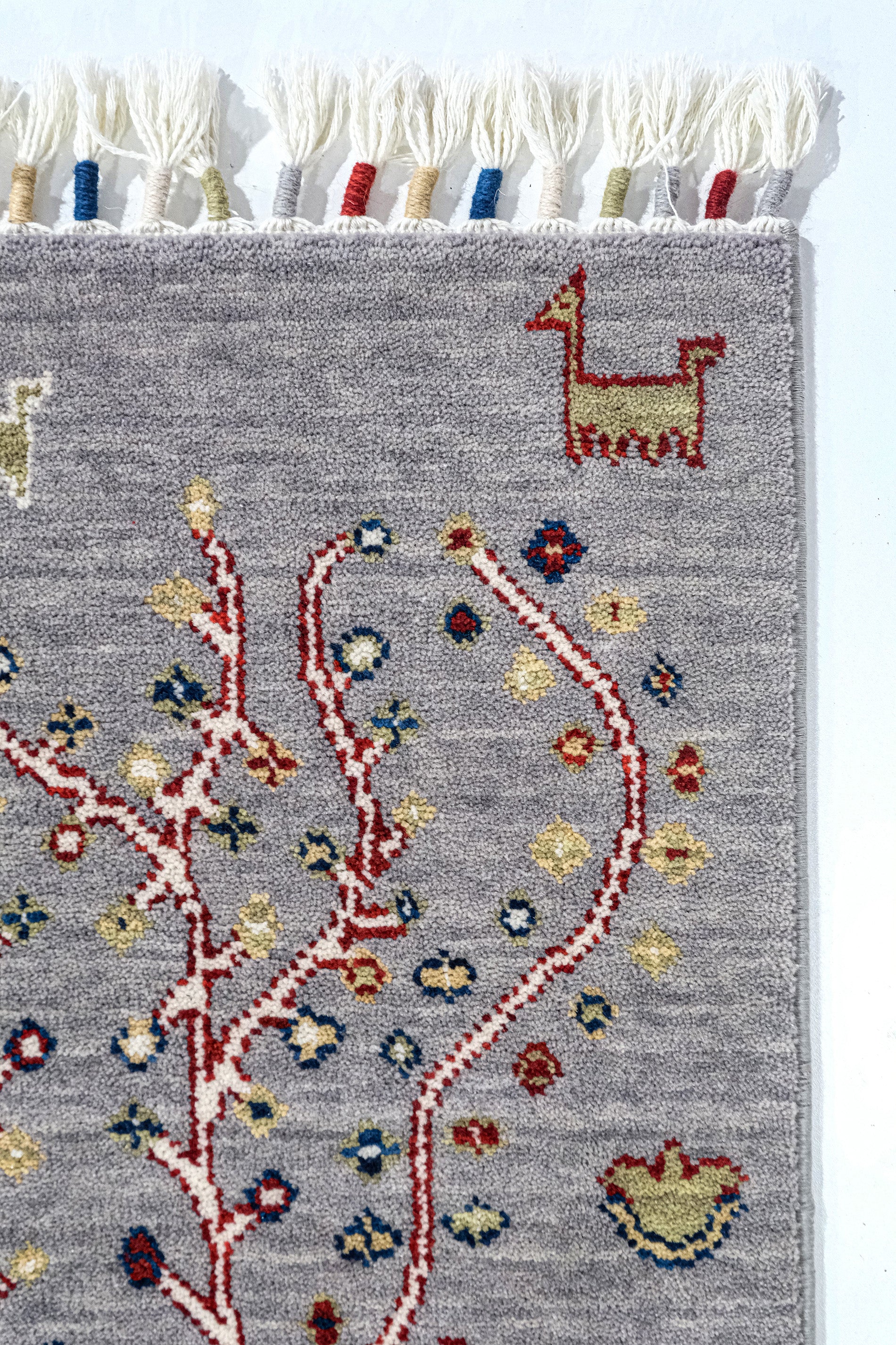 Not: Bu halı doğal elyaf ve pamuk atkı ile üretildiği için eninde ±%3–4, boyunda ise ±%1–2 oranında çekme payı olabilir.